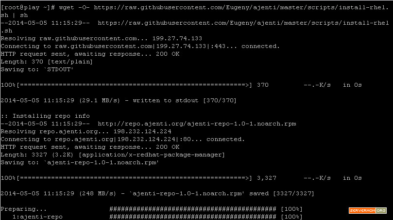 wget -O- https://raw.githubusercontent.com/Eugeny/ajenti/master/scripts/install-rhel.sh | sh